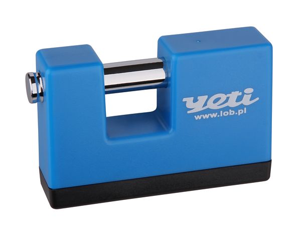 To jedyna kłódka trzpieniowa pod marką Yeti, o rozmiarze 75 mm. Pokrycie korpusu PCV w widoczny sposób podnosi jej estetykę, a dodatkowo podobnie jak w przypadku kłódki z chronionym pałąkiem, chroni przed zarysowaniami elementów, na których jest mocowana.