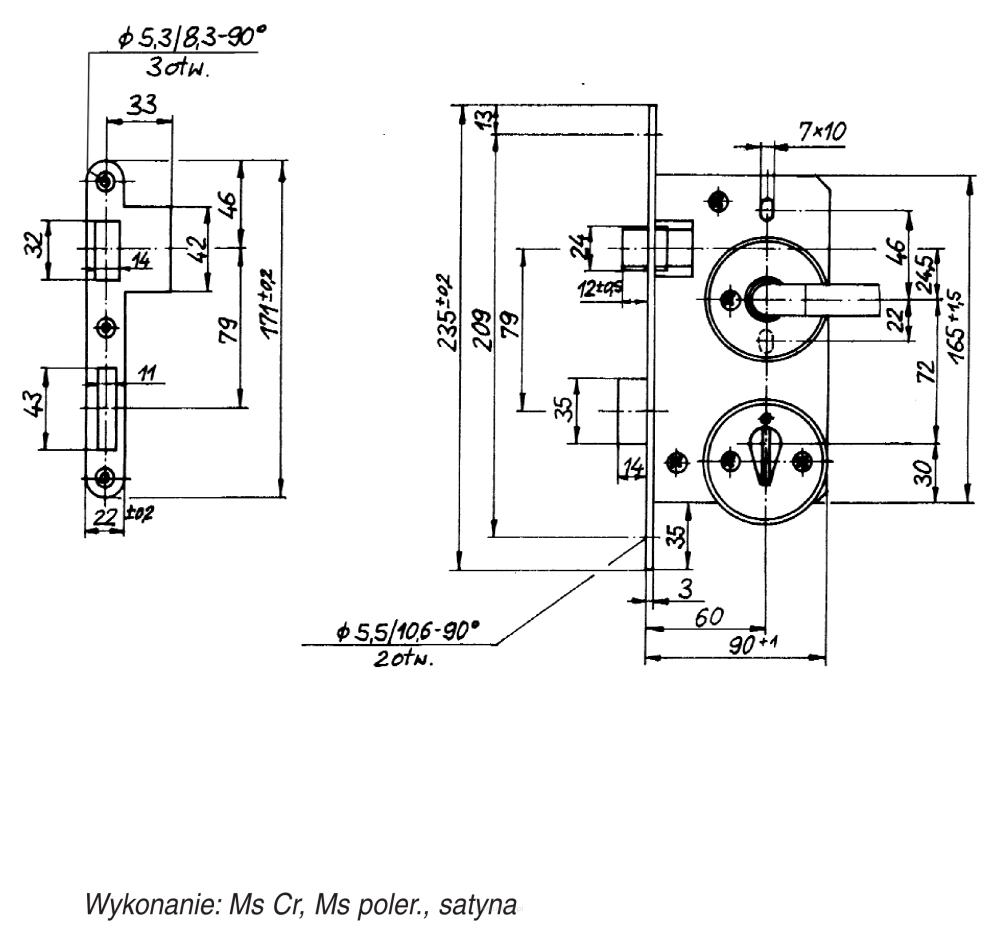 Zamek potrójnego działania, przetłoczony szyld 164-078