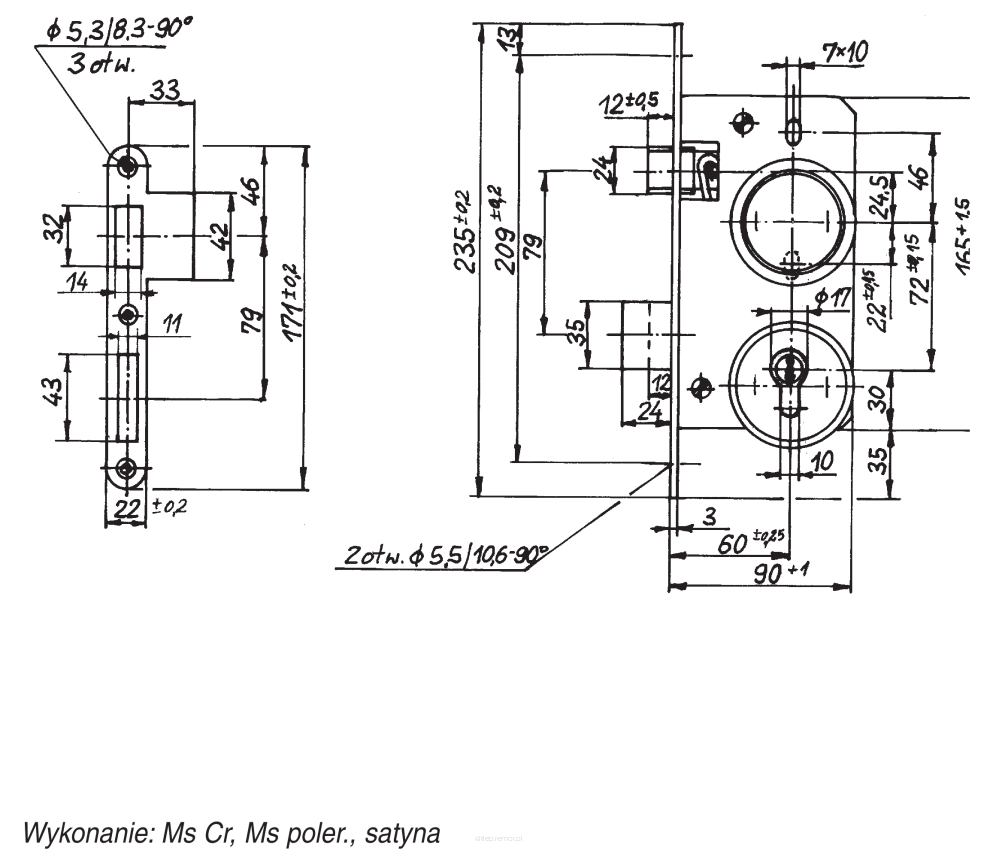 Zamek drzwiowy wpuszczany z zapadką dzieloną