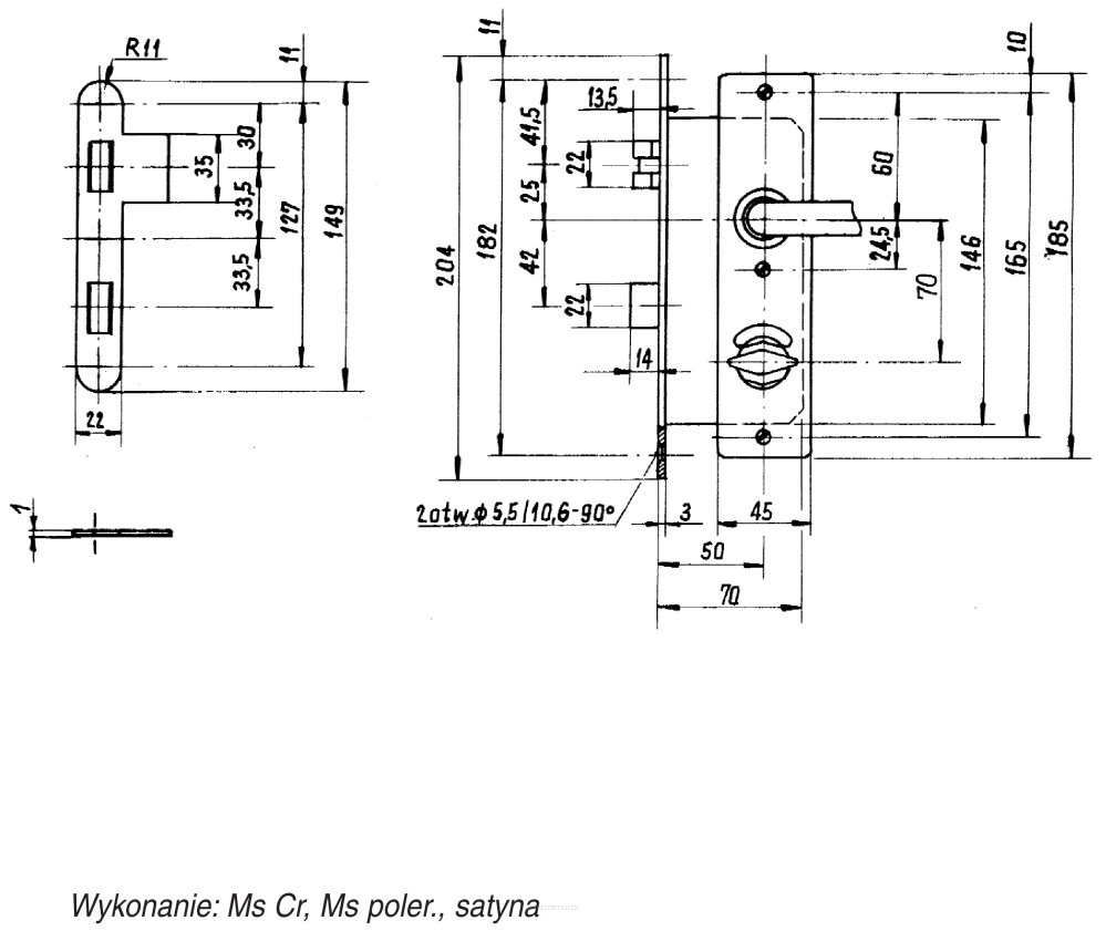 Zasuwa drzwiowa czolowa II A 165-001 cr