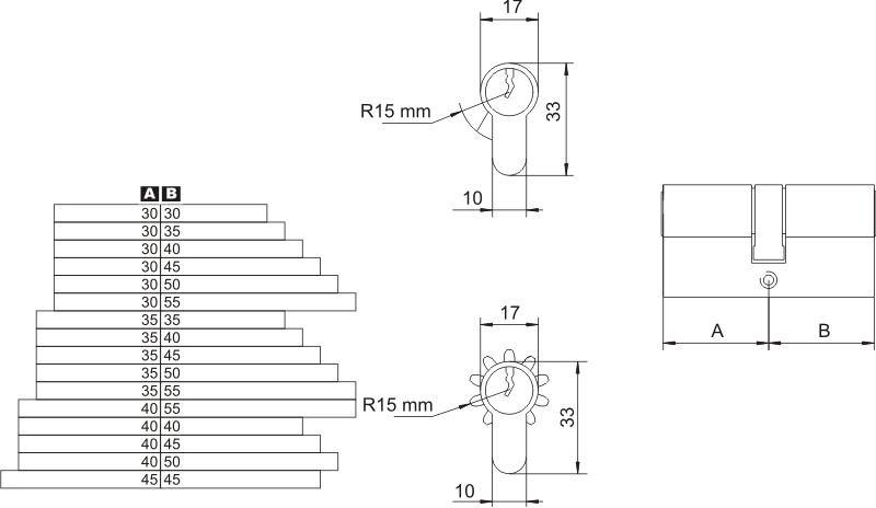 klucz o profilu z pięcioma nacięciami, w komplecie 3 szt. kluczy
