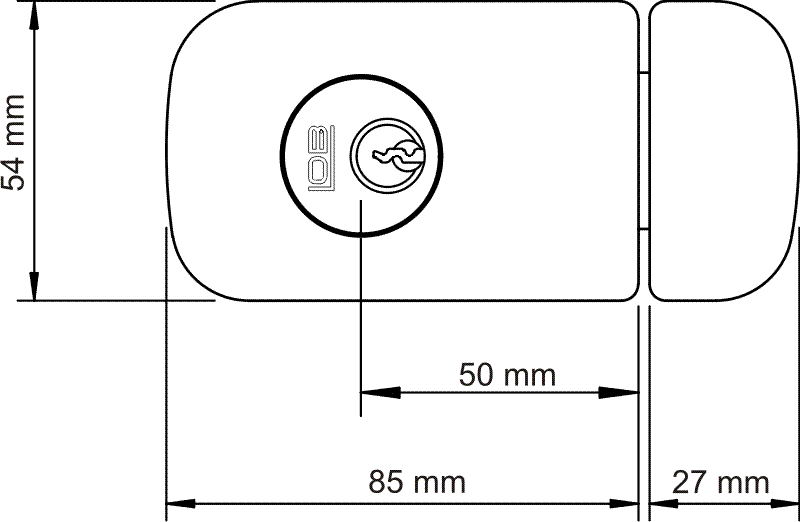 Zamek wierzchni, zasuwkowy, dwubębenkowy TB52 przeznaczony jest do zabezpieczania pomieszczeń jako zamek dodatkowy obok zamka głównego.